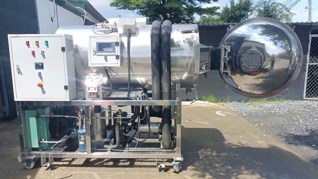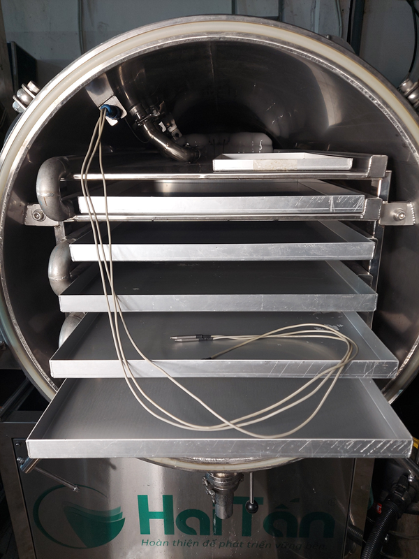 • Stage 1: Freezing the product to be dried. At this stage, only the compressor is operating. In production, Hai Tan recommends that customers pre-freeze the product outside (note that it should be slow-frozen here). This saves 4-8 hours of drying.