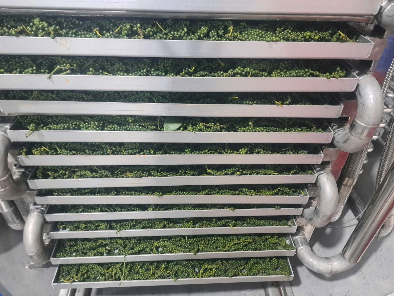 - Stage 1: Freezing the product to be dried. At this stage, only the compressor is operating. In production, Hai Tan recommends that customers pre-freeze the product outside (note that it should be slow-frozen here). This saves 4-8 hours of drying.