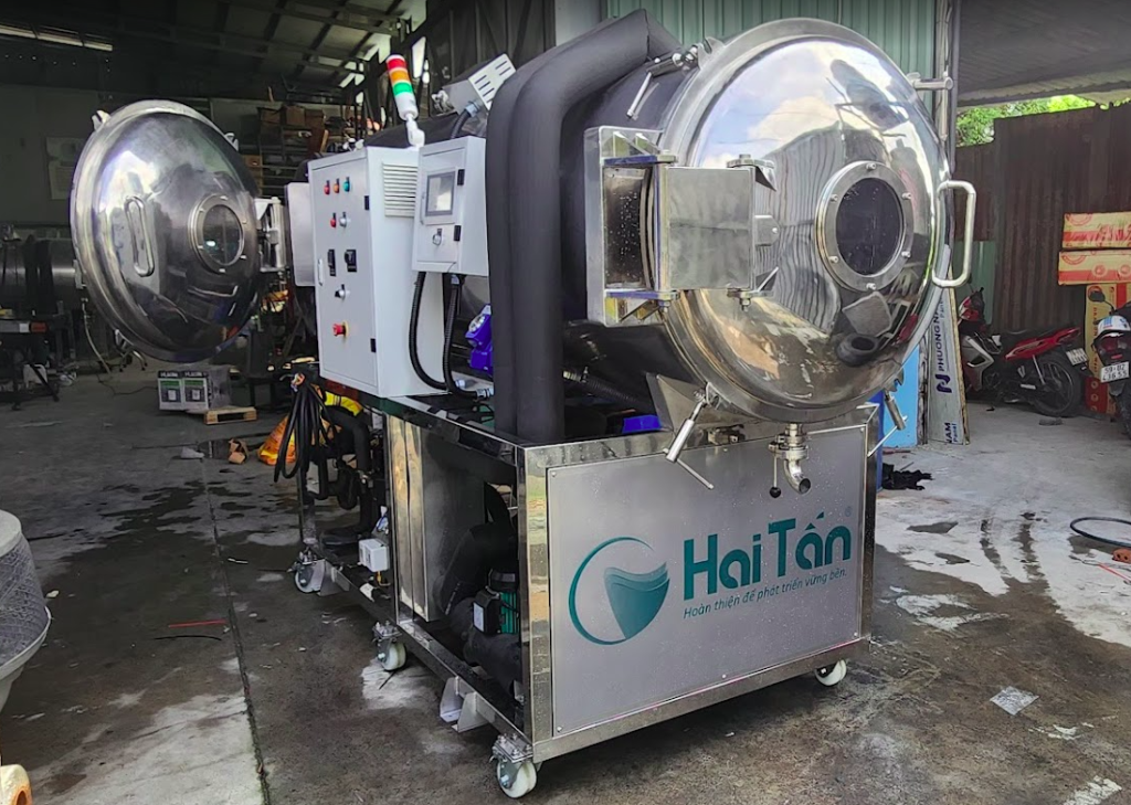 - Stage 1: Freezing the product to be dried. At this stage, only the compressor is operating. In production, Hai Tan recommends that customers pre-freeze the product outside (note that it should be slow-frozen here). This saves 4-8 hours of drying.